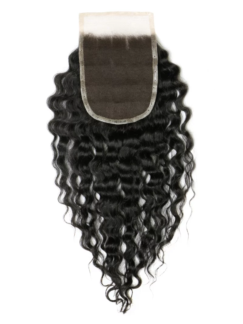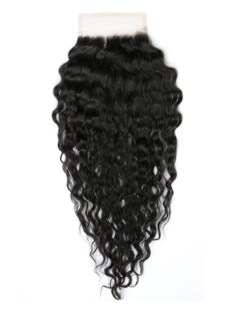 Closure Natural Curly 5X7, Dentelle suisse, Noeuds blanchis, 16″