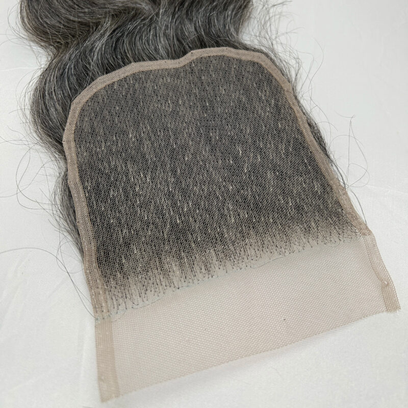 Cette closure en dentelle suisse grise est confectionnée à partir de cheveux humains naturels provenant de donneuses. Sa base en dentelle suisse est douce et confortable à porter. C’est la closure idéale pour un look gris naturel, offrant une couverture complète et la possibilité de coiffer vos cheveux comme vous le souhaitez. Légère et résistante, elle offre un rendu naturel et réaliste. Avec un entretien approprié, cette closure peut durer plusieurs années.