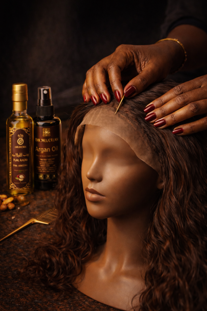 Apportez vos paquets de tissages et votre closure ou frontale, achetés sur le site Othentique Hair : La confection de perruques consiste à transformer vos paquets de tissage et votre closure/frontale en une perruque qui sublime votre style.