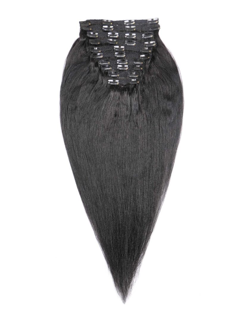 Extensions à clips en Indian Raw Hair de 130g à 150g, travaillées pour obtenir la texture « Relaxed » (aspect cheveu texturé lissé). Ce kit en Noir Naturel évite l’aspect « trop soyeux » des extensions classiques pour offrir un mouvement naturel et un volume homogène qui se fond parfaitement dans votre propre chevelure lissée.