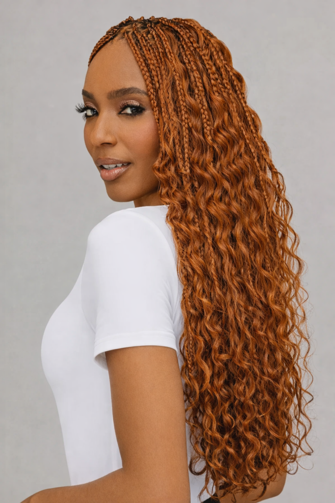 Style Hybride « Goddess » : Une fusion élégante entre des tresses fines aux racines et une cascade de mèches libres pour un effet bohème chic très tendance.